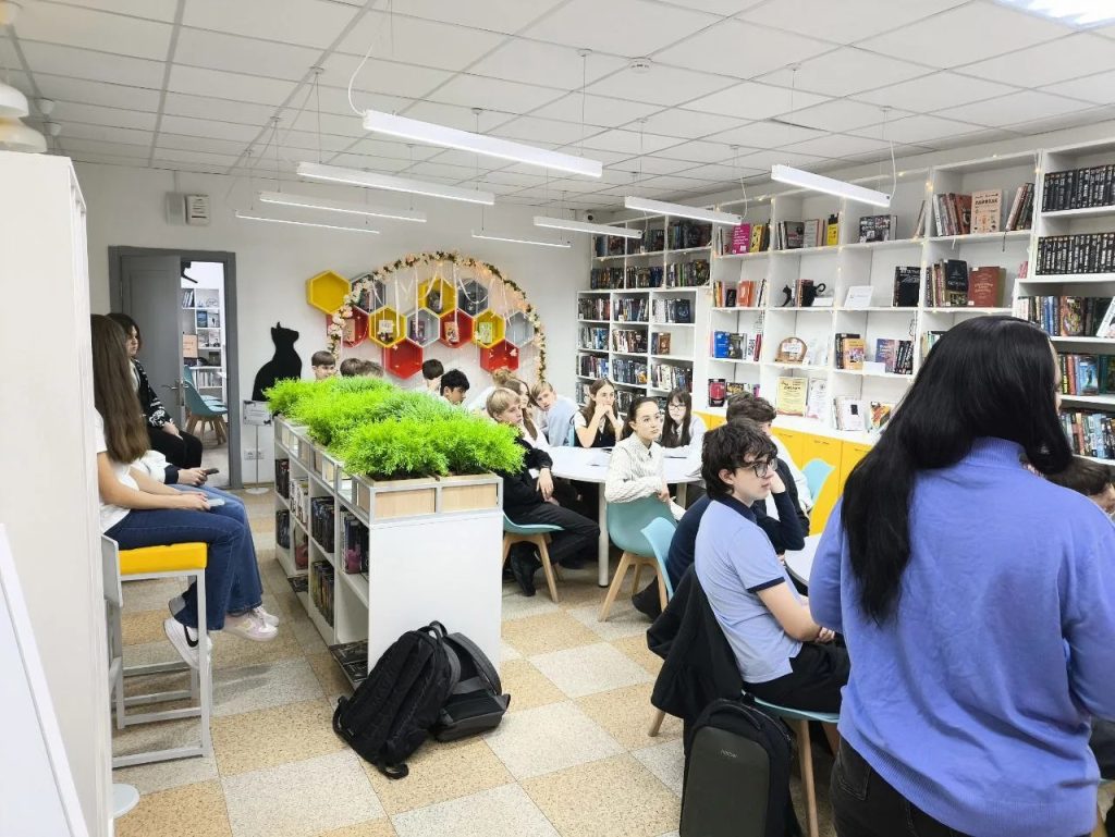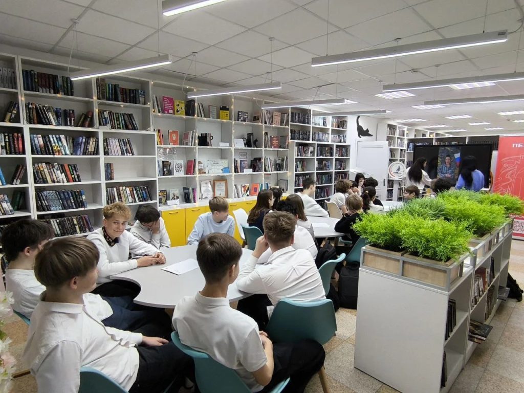 12 марта ученики 8 «Г» класса вместе с учителем истории отправились в городскую библиотеку на улице Дзержинского №12. Целью посещения стала встреча с представителем волонтерского движения «Русский дух» — Анной Валерьевной, которая является его координатором и занимается сбором гуманитарной помощи для наших бойцов на СВО. Также на мероприятии присутствовала Татьяна Павловна Валькова — муниципальный координатор «Движения Первых», которая помогла организовать это событие, и сама активно приняла участие.