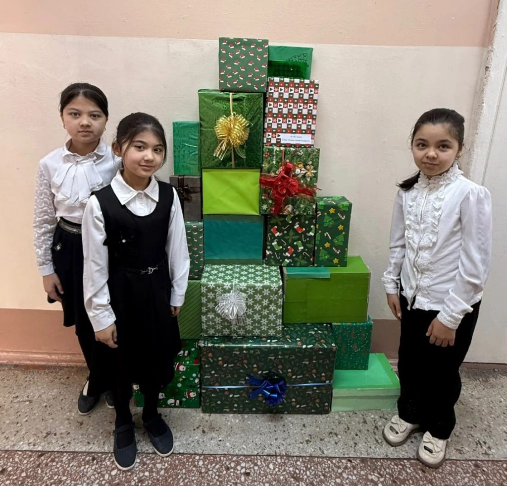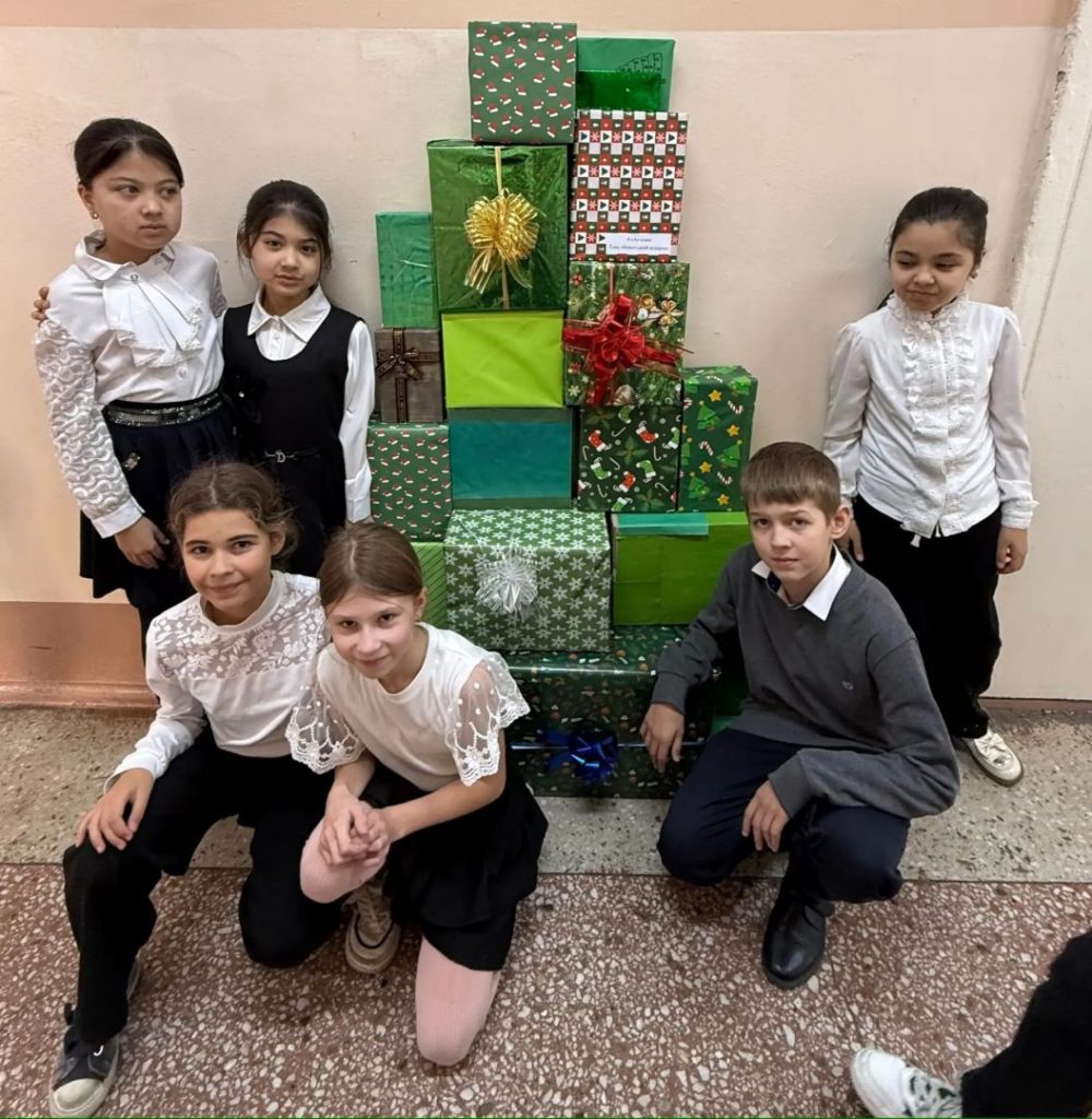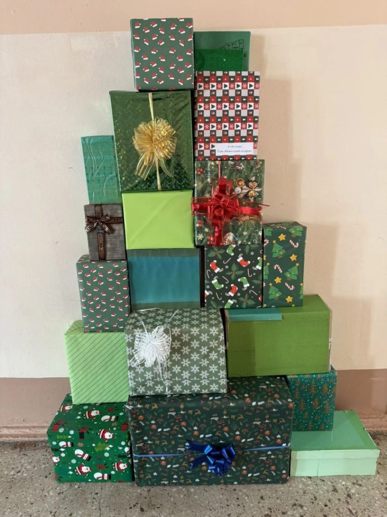❄️🎄⛄️Ребята создали необычную ёлочку из подарочных коробок.