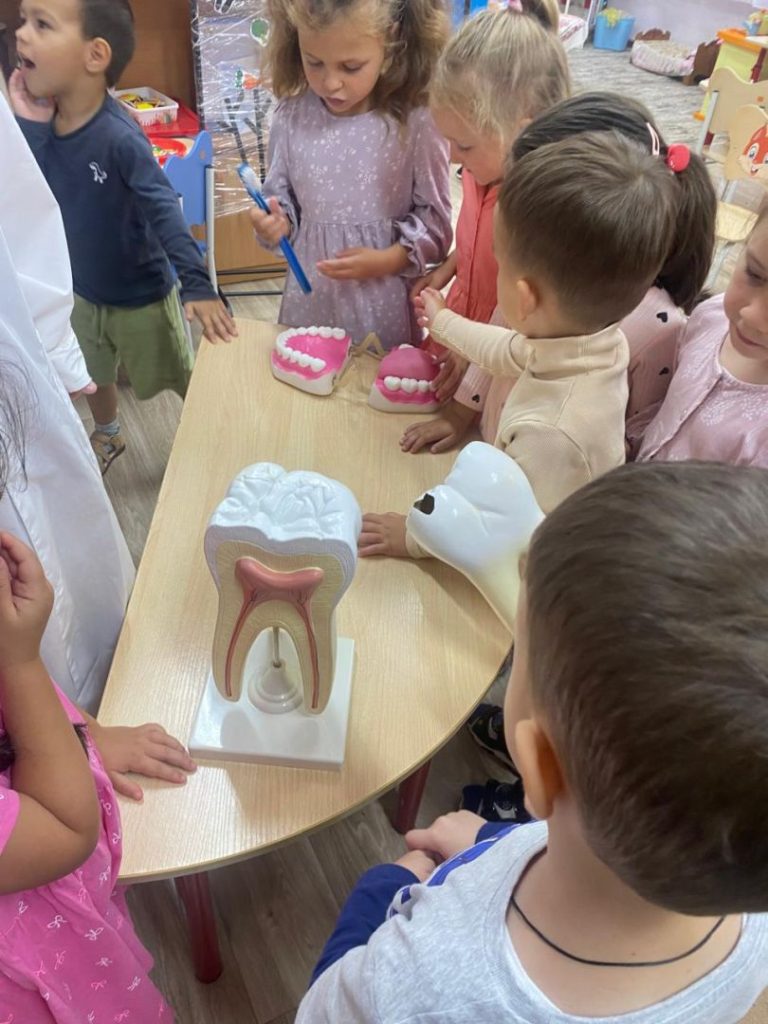 У наших Веселых гномиков интересное событие! В ходе дня здоровых зубов девочки — школьницы из медицинского класса рассказали интересные факты о строении зуба, причинах возникновения кариеса, о том, что необходимо делать для его профилактики.