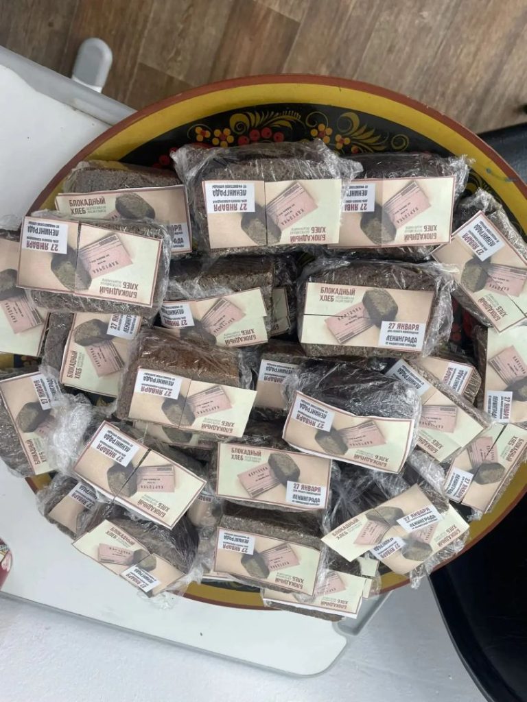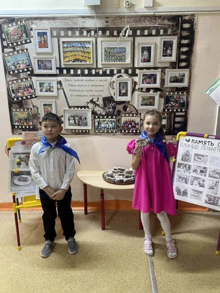 Акция «Кусочек хлеба с теплом»: Мы показали ребятам, как выглядели те самые 125 граммов хлеба. Дети узнали, что в холода этот маленький кусочек дарил надежду и силы.