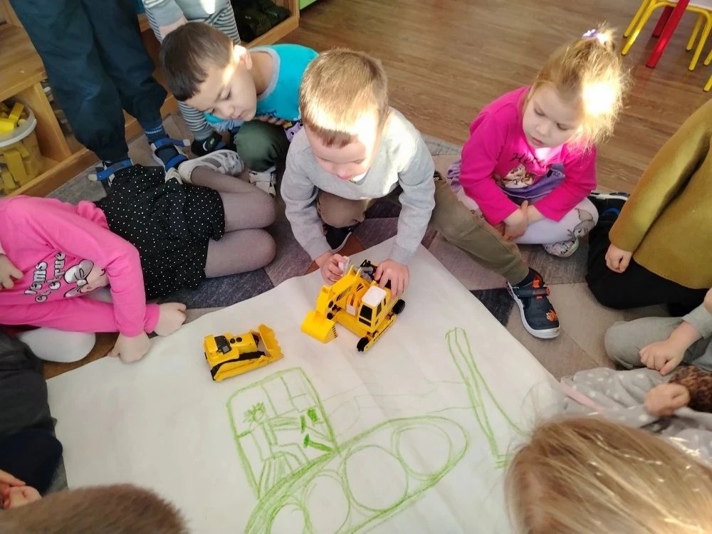 🔹 Бросовый материал : Колеса из крышек, кузовы из коробок, шнеки из нудлов. Использование «мусора» учит детей видеть в обычных вещах детали сложного механизма и беречь экологию.