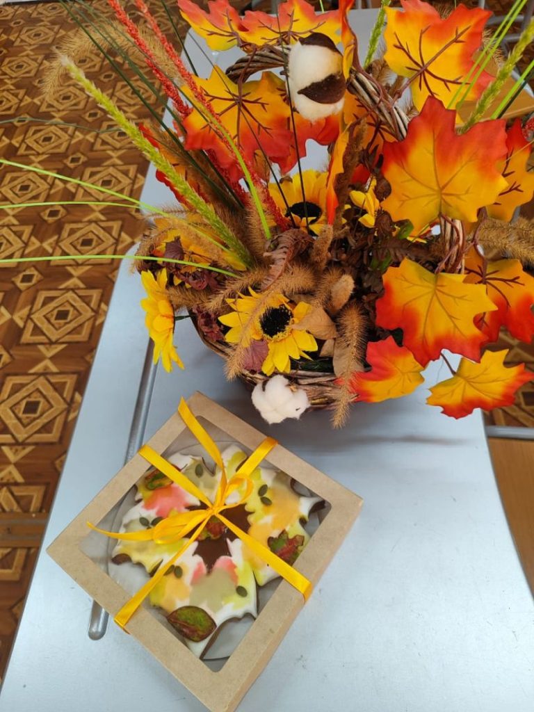 Традиционно в конце 1 четверти в нашей школе проходит «Осенний калейдоскоп». Ученики 8Б класса приняли активное участие в празднике: напекли осенних пирогов, подготовили шикарный костюм осени.