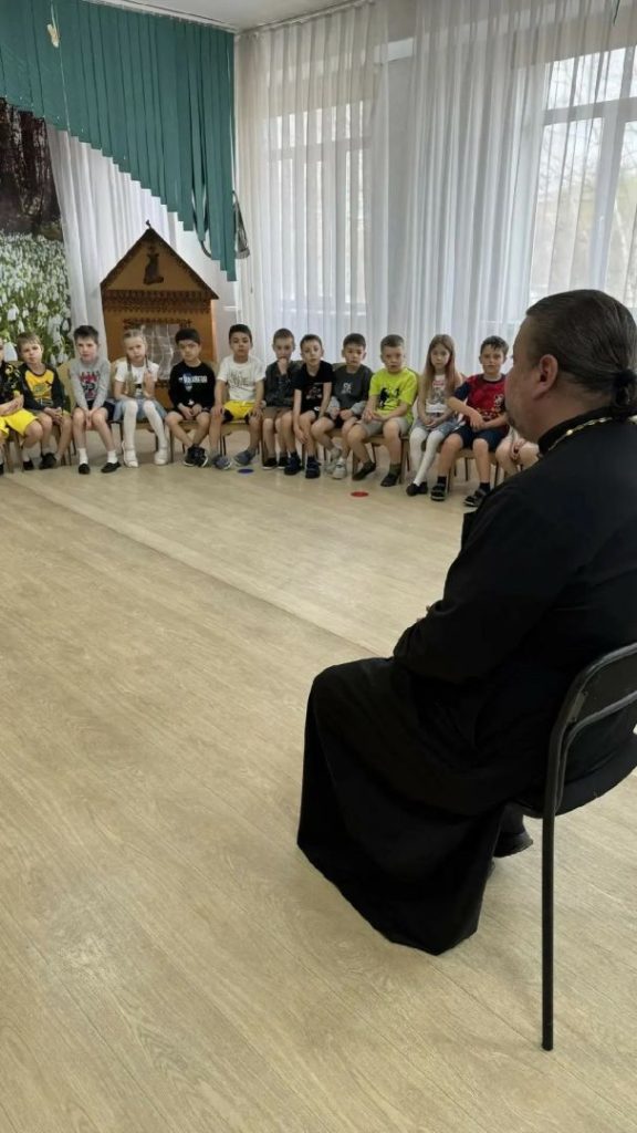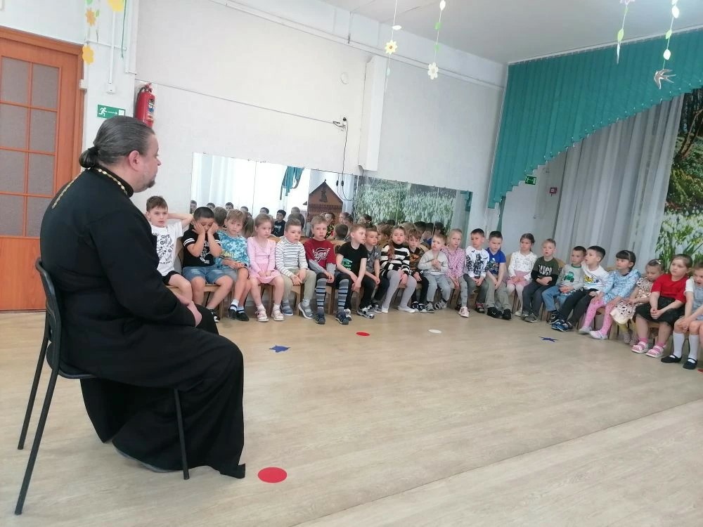 Встреча прошла в атмосфере особого душевного тепла. Отец Виталий поздравил детей с праздником и рассказал о том, что Пасха — это торжество жизни, любви и милосердия. Беседа быстро переросла в живой диалог о самом важном: о наших ценностях, о выборе между добром и злом, о том, как важно быть честным и добрым человеком.