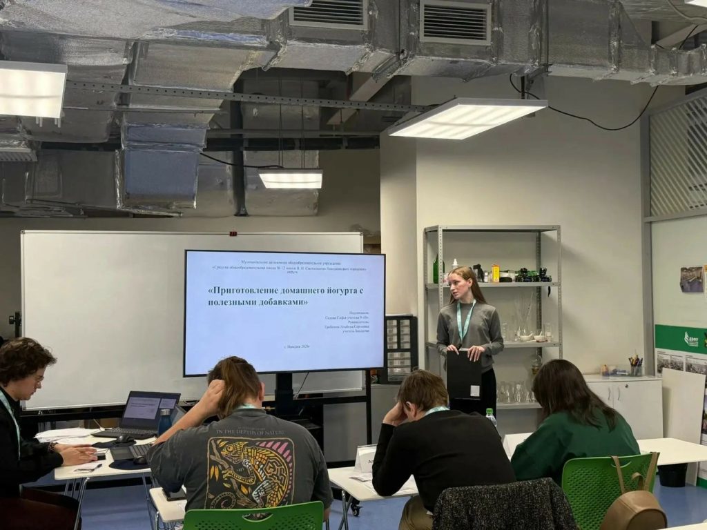 Седова Софья, ученица 9 «В» класса, представила исследование на тему «Рецепт приготовления домашнего йогурта с полезными добавками».