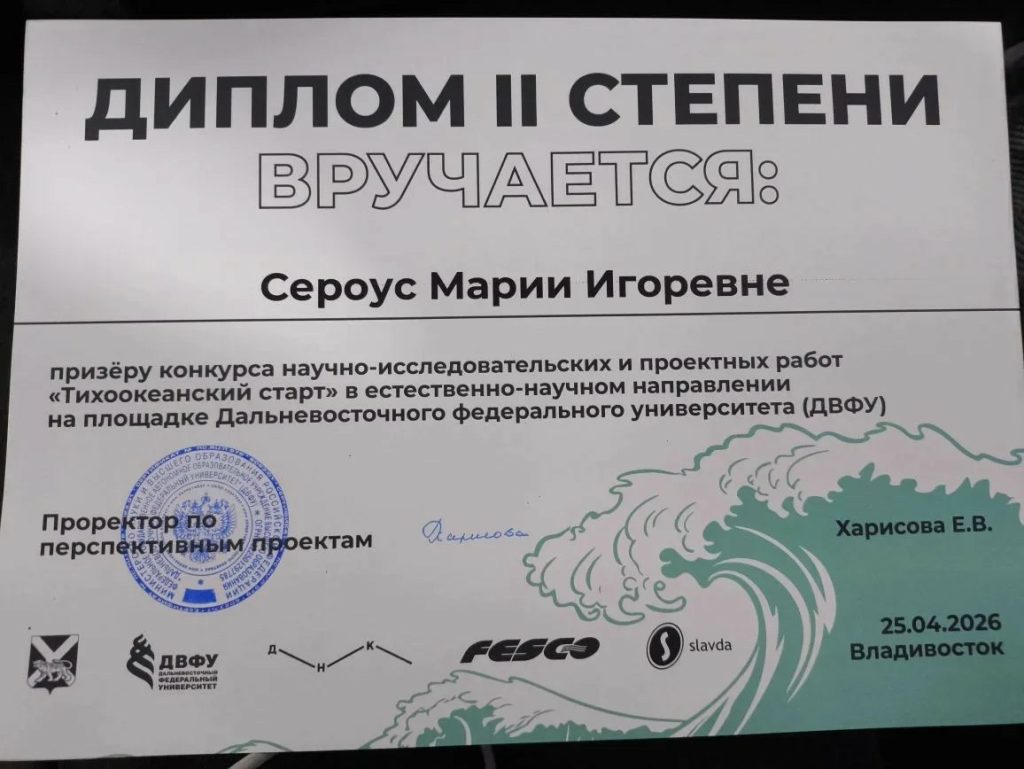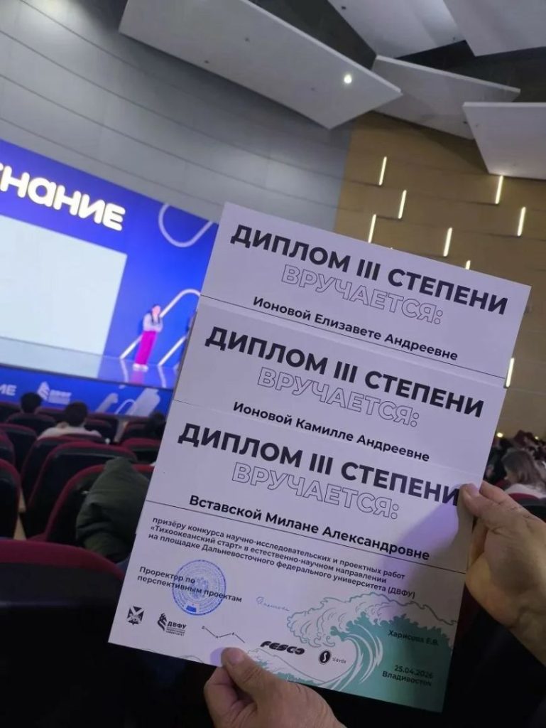 Всего в конкурсе приняли участие 148 человек, из них 40 — в естественно‑научном направлении. Наши девочки достойно защитили свои проекты и были отмечены членами жюри университета, а также получили дополнительные баллы для поступления в ДВФУ.