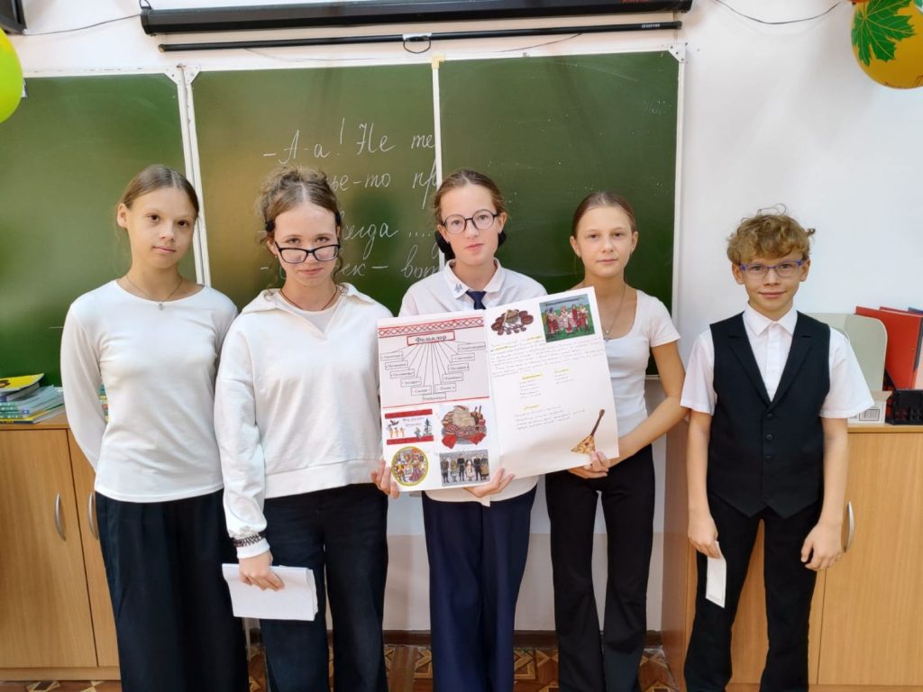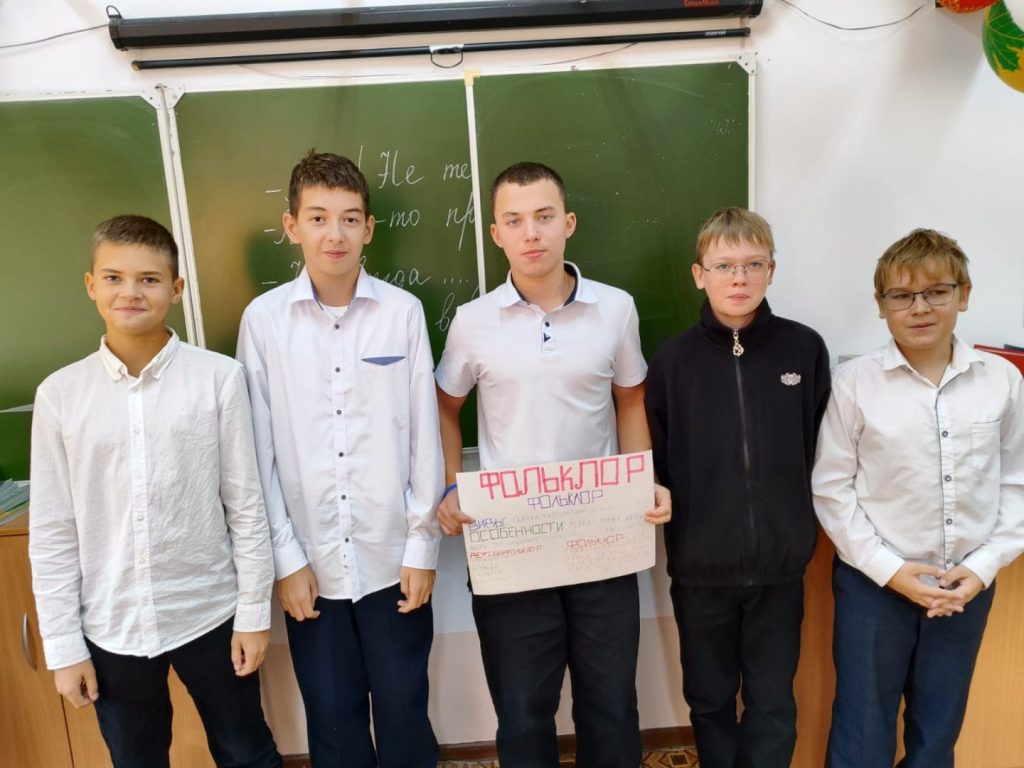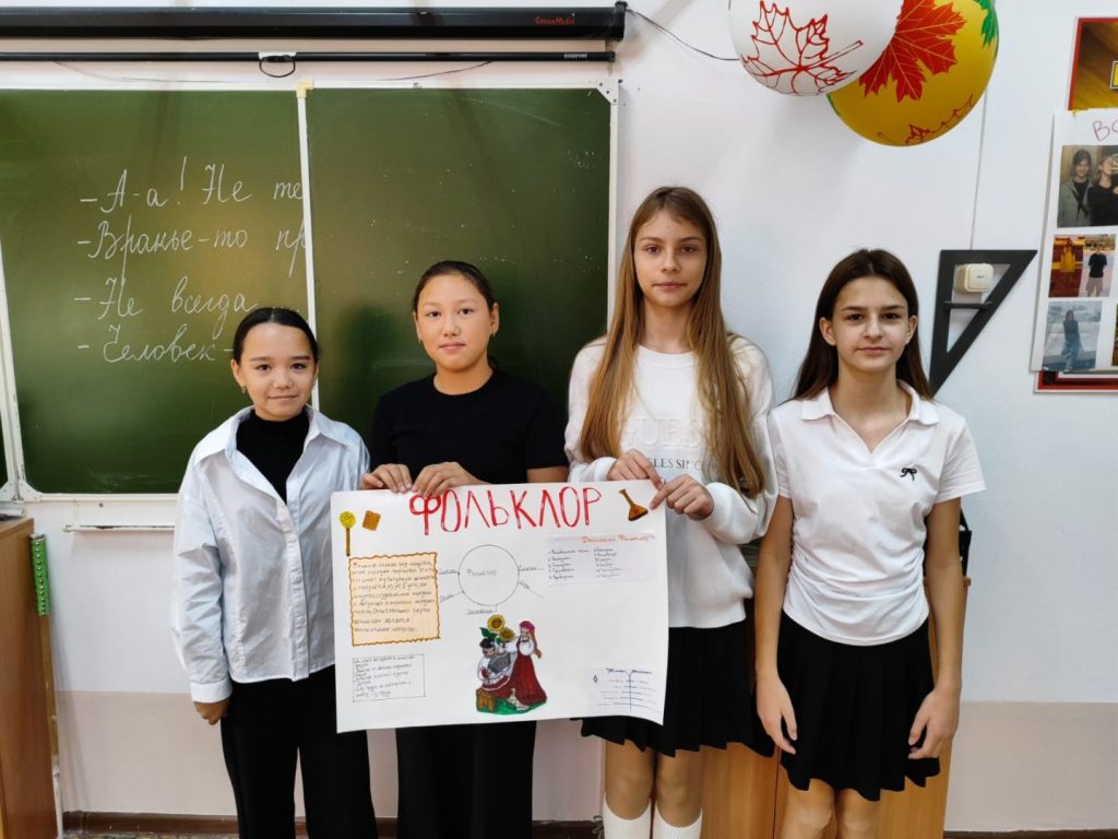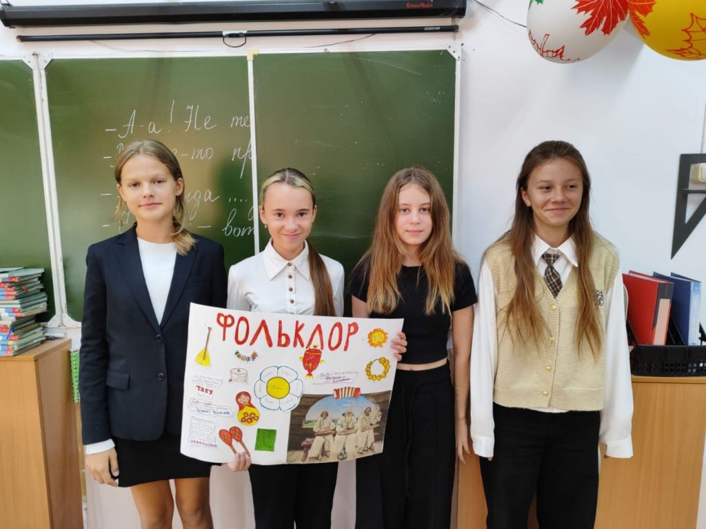7 октября в 6Б классе прошёл обобщающий урок по теме «Фольклор». Ребята представляли свои проекты, отвечали на вопросы одноклассников. Урок прошёл быстро, познавательно и весело