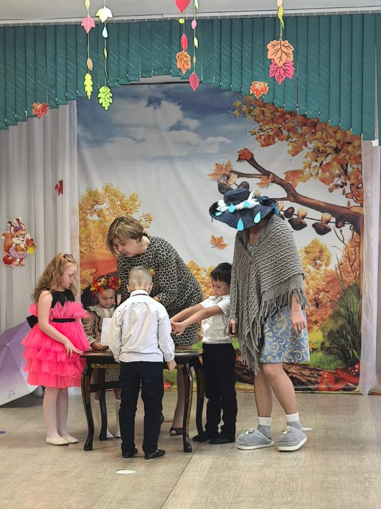 Дети группы «Солнышко» сегодня весело и интересно провели праздник « Встреча с Осенью». Ребята читали стихи, играли в игры, говорили как они любят осень. К ним на праздник заглянула Непогодушка и тоже понравилась ребятам , потому что они очень любят гулять в дождь.