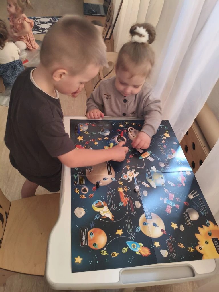 Особая гордость этого дня — наши самые маленькие участники. Несмотря на возраст, крохи наравне со старшими ребятами включились в игру! Они с серьезным видом «работали» в отсеках, нажимали на кнопочки приборов и с любопытством заглядывали в «космические дали».