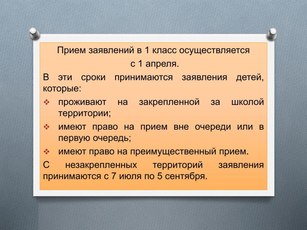 - Льготные категории при приёме в 1 класс
