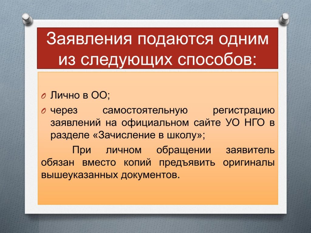Подать заявления в 1 – й класс можно двумя способами: