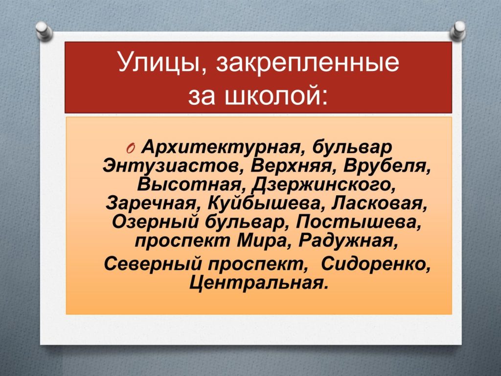 Перечень улиц, закрепленных за МАОУ «СОШ № 12» НГО: