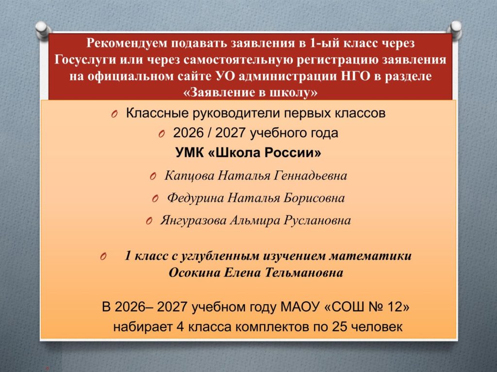 В 2026-2027 учебном году МАОУ «СОШ №12» открывает первый класс